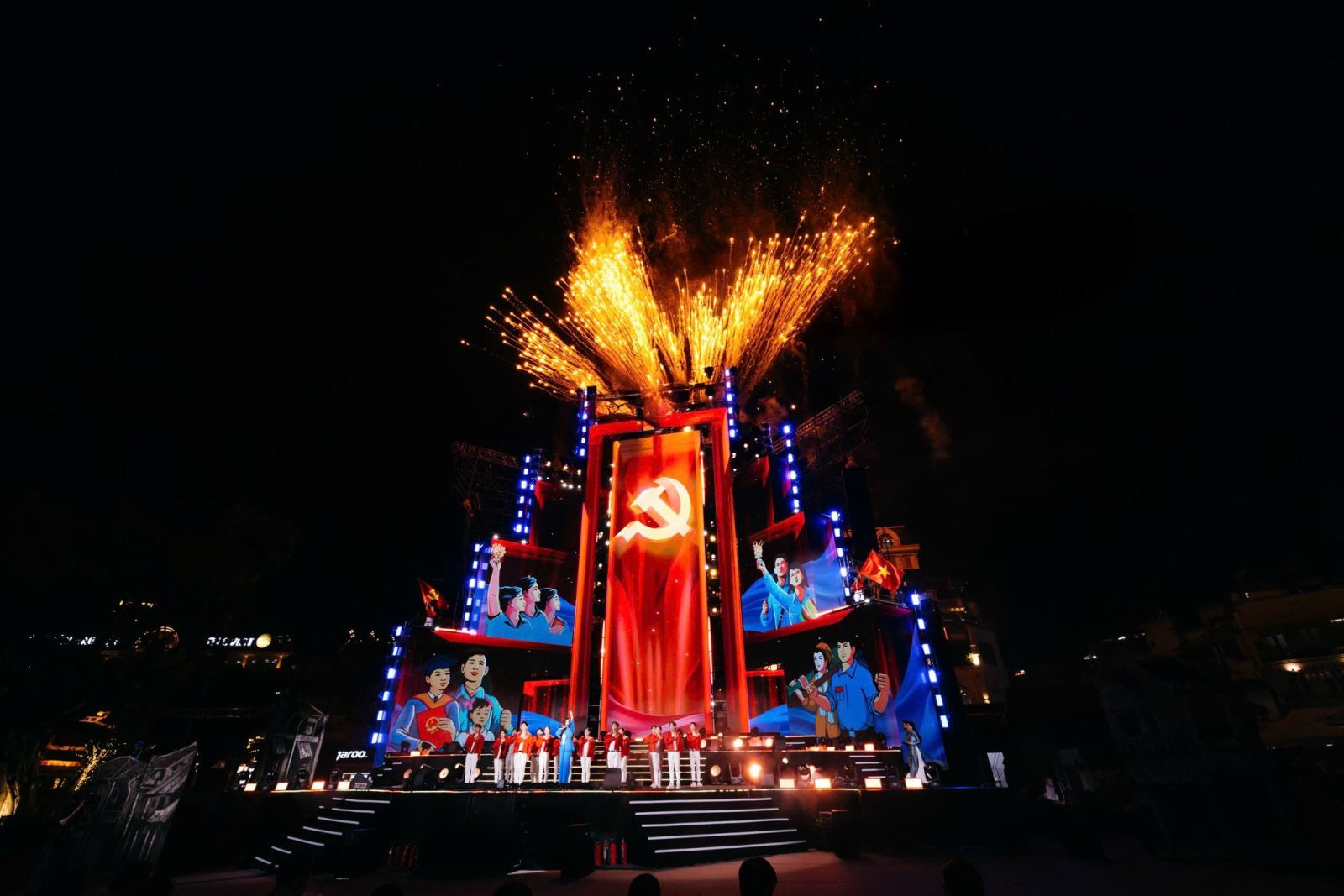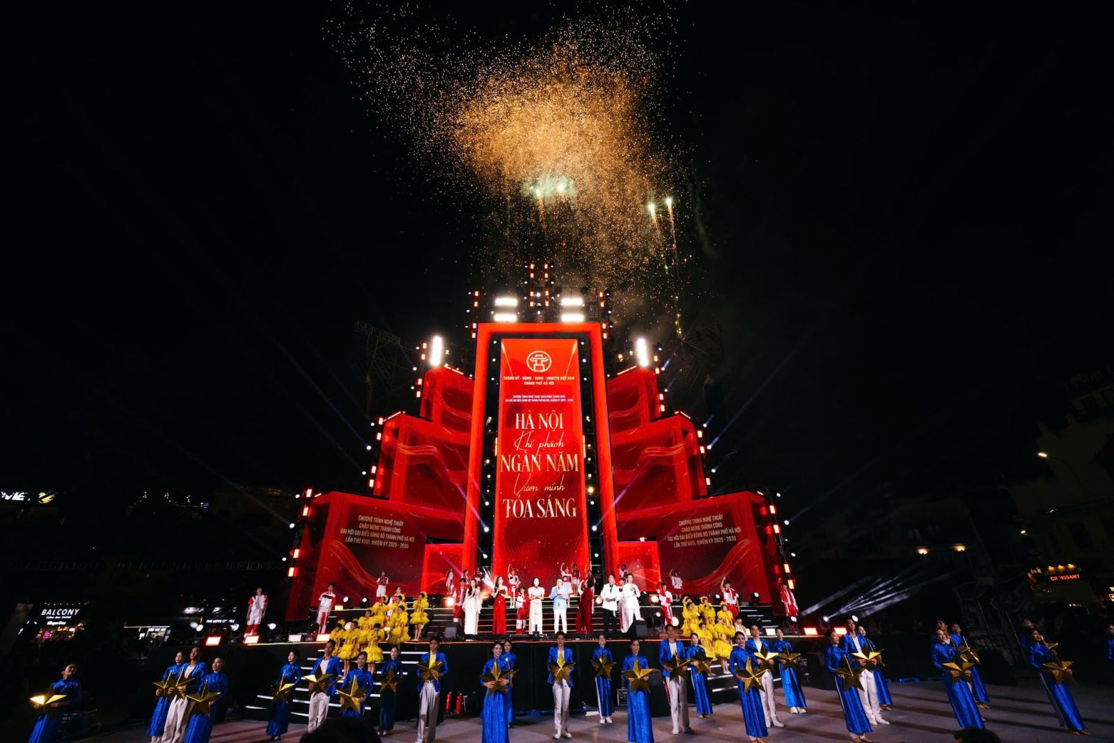Thi công sân khấu đại hội Đảng bộ thành phố Hà Nội lần thứ XVIII, nhiệm kỳ 2025-2030